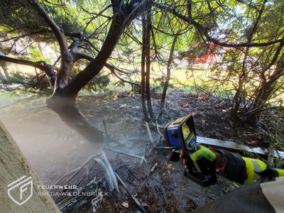 … mehr …Unmittelbar an einem Mehrfamilienhaus war ein großes Gebüsch in Brand geraten. Bewohner konnten das Feuer mit… mehr …