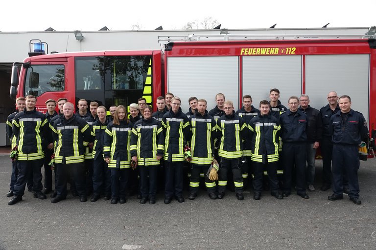 Mit einer Einsatzübung legten 24 Teilnehmer des jüngsten Truppmann-Lehrganges erfolgreich ihre praktische Prüfung ab. Unter den Teilnehmern aus den Feuerwehren Rheda-Wiedenbrück und Langenberg sowie der Werkfeuerwehr der Westag & Getalit AG befanden sich auch vier Feuerwehrfrauen. Ebenso war die Jugendfeuerwehr Rheda-Wiedenbrück vertreten mit den Kameradinnen und Kameraden, die in diesem Jahr aus Altersgründen in die Löschzüge wechseln.