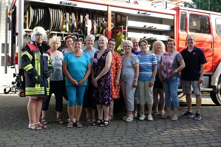 Heute hatten wir beim Löschzug Lintel die Landfrauen Lintel-Wiedenbrück zu Gast. Die Landfrauen konnten sich einen kleinen Einblick über die Ausrüstung machen und auch mal einen Brandschutzmantel anziehen. Gerade bei den heutigen Temperaturen weit über 30° C war dies mal eine interessante Erfahrung. Nach einer Besichtigung des Feuerwehrhauses, sowie der Fahrzeuge inkl. einer kleinen Pumpenübung, konnten wir den Abend gemütlich ausklingen lassen.