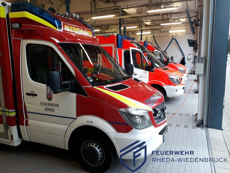 Wir möchten uns daher ausdrücklich bei allen Beteiligten für die reibungslose und schnelle Hilfe bedanken! Unter anderem waren in Rheda-Wiedenbrück Fahrzeuge und Personal folgender Feuerwehren und Rettungsdienste im Einsatz: Berufsfeuerwehr Bielefeld, Kreis Herford mit den Rettungswachen Bünde und Spenge, Kreis Paderborn und Berufsfeuerwehr Minden.