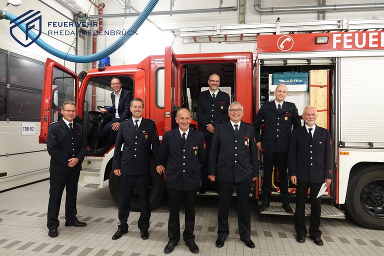 Unter Berücksichtigung der aktuellen Corona-Bedingungen traf sich der Löschzug Wiedenbrück in einer locker bestuhlten und gut belüfteten Fahrzeughalle zu einer kleinen Feierstunde. Bereits zwei Generalversammlungen in Folge konnten wegen Corona nicht stattfinden. So blieben die Würdigung des jüngsten Feuerwehrnachwuchses ebenso aus wie die Ehrungen langjähriger Feuerwehrmitglieder und nicht zuletzt die Ehrung der Kameraden, die in den letzten beiden Jahren aus diesen Reihen verstorben sind. Lehrgänge und Seminare fanden zwar zum Teil online statt, Beförderungen und Ernennungen gab es bislang aber nur auf dem Papier. „Unter Beachtung der 3-G-Regel (geimpft-genesen-getestet) möchten wir heute Abend die 3-B-Regel (Bratwurst-Brot-Bier) mit euch genießen. Es ist schön, endlich mal wieder in eure Gesichter zu sehen!“ Sichtlich erfreut begrüßte mit diesen Worten Löschzugführer Jürgen Böckmann gemeinsam mit seinen beiden Stellvertretern Guido Kölling und Sebastian Lohmann die Kameradinnen und Kameraden des Löschzuges Wiedenbrück sowie die Ehrengäste Bürgermeister Theo Mettenborg und den Leiter der Feuerwehr Christian Kottmann. Einfühlsam übernahm Pfarrer Marco Beuermann die Totenehrung. Zwei Kameraden der Ehrenabteilung – Werner Chudzik und Arnold Brokamp – waren in aller Stille im kleinsten Familienkreis beigesetzt worden. „Sie leisteten ihren Feuerwehrdienst in einer anderen Zeit, aber mit den gleichen Motiven wie wir heute in der Feuerwehr.“ würdigte der Feuerwehrseelsorger die Verstorbenen. Bürgermeister Theo Mettenborg sprach den Feuerwehrleuten nicht nur seinen besonderen Respekt aus, sondern zeigte diesen sehr authentisch bei der empathisch geprägten Ehrung langgedienter Kameraden mit 25 und 35 Jahren Mitgliedschaft. „Ihr Feuerwehrleute seid für mich die Helden unserer Zeit, denn trotz Corona konnten sich die Bürger in unserer Stadt immer fest auf euch alle verlassen. Das wissen so wie ich Rat und Verwaltung sehr zu schätzen. Danke dafür!“ Als Beispiel für gute Zusammenarbeit zwischen ehrenamtlicher Feuerwehr und der Verwaltung führte der Bürgermeister die zielorientierte, nicht immer einfache, regelmäßige Überarbeitung des Brandschutzbedarfsplanes an. Das Ergebnis spiegelt die enorme Schlagkraft der ehrenamtlich tätigen, freiwilligen Feuerwehr. Zu jeder Tages- und Nachtzeit sei auf die Kameradinnen und Kameraden ohne Ausnahme Verlass. Der Leiter der Feuerwehr Christian Kottmann setzte die Tagesordnung fort mit der Ehrung für 10-, 40- und 50-jährige Mitgliedschaft. Mit Heinz Bremehr schaute er auf ein halbes Jahrhundert Feuerwehrmitgliedschaft zurück mit den Worten: „Seitdem ich in der Feuerwehr bin, kenne ich dich als hilfsbereiten, kompetenten und freundlichen Kameraden, den man immer um Rat fragen, auf den man sich stets verlassen kann.“ Kottmann zeigte sich besonders erfreut darüber, dass selbst in der langen und schwierigen Zeit der Kontaktbeschränkungen mit deshalb unterbliebenen Übungs- und Kameradschaftsdiensten der Feuerwehrnachwuchs gesichert ist. Insgesamt konnte er so 12 Kameraden zu Feuerwehrmännern befördern. „Seid gewiss, dass das nicht selbstverständlich für jede freiwillige Feuerwehr im Land ist. Der Verband der Feuerwehren in NRW schaut deshalb sehr genau auf uns, warum das in unserer Feuerwehr hier so gut klappt.“ Die Vergabe von Leistungsabzeichen durch die beiden stellvertretenden Löschzugführer besiegelte den „offiziellen“ und kurzweiligen Teil der Feierstunde.Im Anschluss kamen alle Anwesenden gerne dem Aufruf zur 3-B-Regel nach und genossen den persönlichen Austausch untereinander in einer fröhlichen und tatkräftigen Gemeinschaft.