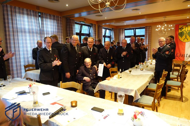 Am Freitag den 06.05.2022 wurde die Jahreshauptversammlung 2021 beim Löschzug Lintel nachgeholt, welche im Dezember nicht stattfinden konnte. Wir blickten zurück auf ein Jahr mit mehr und weniger Einschränkungen im Jahresverlauf. Mit 39 Einsätzen im Kalenderjahr war es ein insgesamt relativ ruhiges Jahr, welches aber auch besondere Einsätze zu bieten hatte. Alles in allem Stand aber auch 2021 unter dem Schatten der Pandemie, da viele Veranstaltungen und größere Übungen nicht stattfinden konnten. Die frei gewordene Freizeit konnte jedoch gut genutzt werden, sodass in 2021 überdurchschnittlich viele Lehrgänge besucht werden konnten. Zum Jahresende 2021 zählte der Löschzug Lintel 48 Aktive, davon zwei Frauen und 46 Männer, sowie 18 Kameraden in der Ehrenabteilung. Es wurden zwei Herren in die Ehrenabteilung „befördert“, drei Mitglieder verließen den Löschzug aus persönlichen Gründen. Wir konnten eine Frau und zwei Männer als neue Feuerwehrleute aufnehmen. Es wurden 14 Kameradinnen und Kameraden befördert, 7 Kameraden wurden für Ihre Dienstjubiläen geehrt. Unser Mitglied der Ehrenabteilung Christoph konnte die Ehrung für das seltene Jubiläum von 75 Jahren entgegen nehmen.