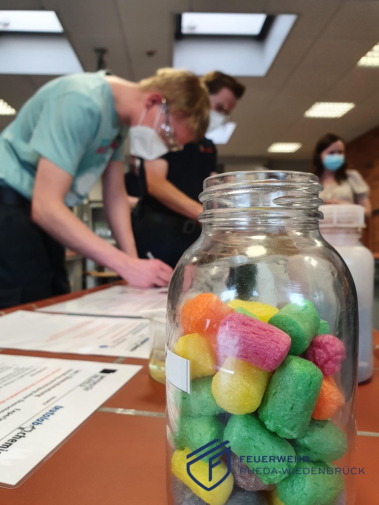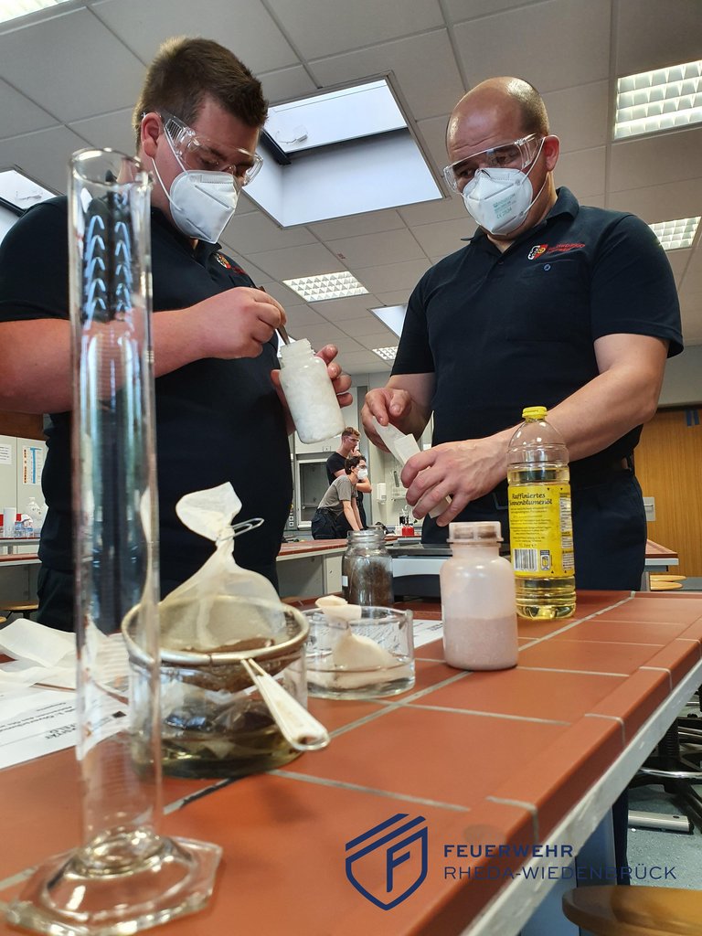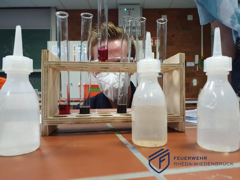 Es war ein wirklich besonderer Übungsdienst für die Ausbildungsgruppe des Löschzugs Rheda: Im Feuerwehralltag hat man immer wieder mittel- und unmittelbar mit verschiedensten gefährlichen Stoffen zu tun - bis hin zu Gefahrgutunfällen. Wie unterschiedliche Stoffe miteinander und aufeinander reagieren, wie wir Säuren und Laugen identifizieren und wie unsere Messgeräte auf bestimmte Stoffe reagieren, all das konnten wir in den Chemieräumen des Einstein-Gymnasiums ausprobieren. Unter fachkundiger Anleitung von zwei Lehrkräften wurden verschiedene Experimente durchgeführt. Immer mit Bezug zum Feuerwehreinsatz. Für die tolle Zusammenarbeit mit dem Einstein-Gymnasium sagen wir von Herzen Dankeschön!