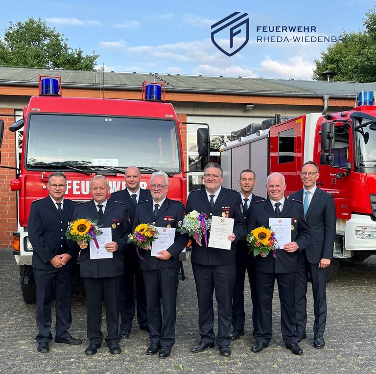 Bürgermeister Theo Mettenborg und der erste Beigeordnete der Stadt, Georg Robra, nahmen genauso wie Stadtbrandinspektor Christian Kottmann und sein Stellvertreter Mathias Görke an der Veranstaltung teil. Mit seinen Grußworten dankte der Bürgermeister allen Einsatzkräften für deren ständige Bereitschaft im Sinne und zum Schutze der Bevölkerung einsatzbereit zu sein. Nicht unerwähnt bleiben dürften an dieser Stelle die Partner:innen, die immer wieder auf einen Aktiven verzichten müssen, wenn bei Tag oder Nacht der Melder geht.