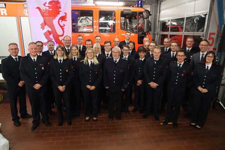 Neu in den Löschzug aufgenommen und/oder nach bestandener Grundausbildung wurden folgende Mitglieder zum Feuerwehrmann/zur Feuerwehrfrau befördert: Christian Herrmann, Semih Ergin, Jacob Gödde, Leon Habraken, Lukas Frese, Daniel Winter, Sören Keber, Timo Hildebrand, Niklas Müller und Anja Remmel. Zusätzlich wurde der neue Seelsorger des Löschzugs, Pfarrer Artur Töws, offiziell in die Einheit aufgenommen.