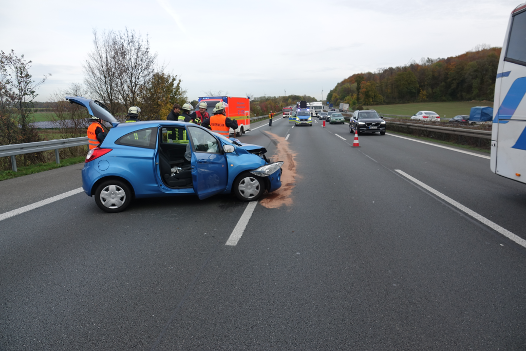 Am Freitagnachmittag ereignete sich auf der Autobahn ein Verkehrsunfall mit einem beteiligten LKW und einem PKW. Der Leitstelle wurde zunächst ein PKW-Brand gemeldet. Dieses bestätigte sich allerdings vor Ort nicht. Vorbeikommende Rettungskräfte aus dem Kreis Soest konnten direkt die Einsatzstelle absichern und Erste-Hilfe leisten. Die Aufgaben des Löschzuges St. Vit beschränkten sich somit auf die weitere Absicherung der Einsatzstelle und die Aufnahme von auslaufenden Betriebsstoffen.