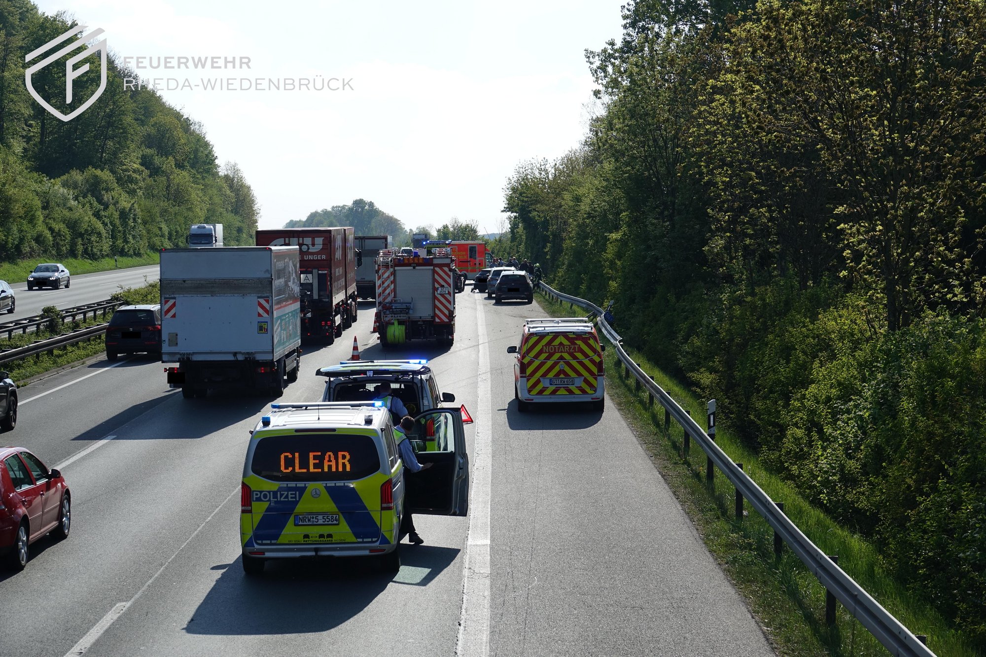 Auf der A2 ereignete sich ein Verkehrsunfall mit drei beteiligten Fahrzeugen. Hierbei wurden zwei Personen verletzt. Wir wurden zur Unterstützung des Rettungsdienstes alarmiert und sicherten die Unfallstellen gegen den fließenden Verkehr ab. Des Weiteren wurde die Trümmerteile von der Fahrbahn beseitigt und auslaufende Betriebsstoffe mit Ölbinder aufgefangen.
