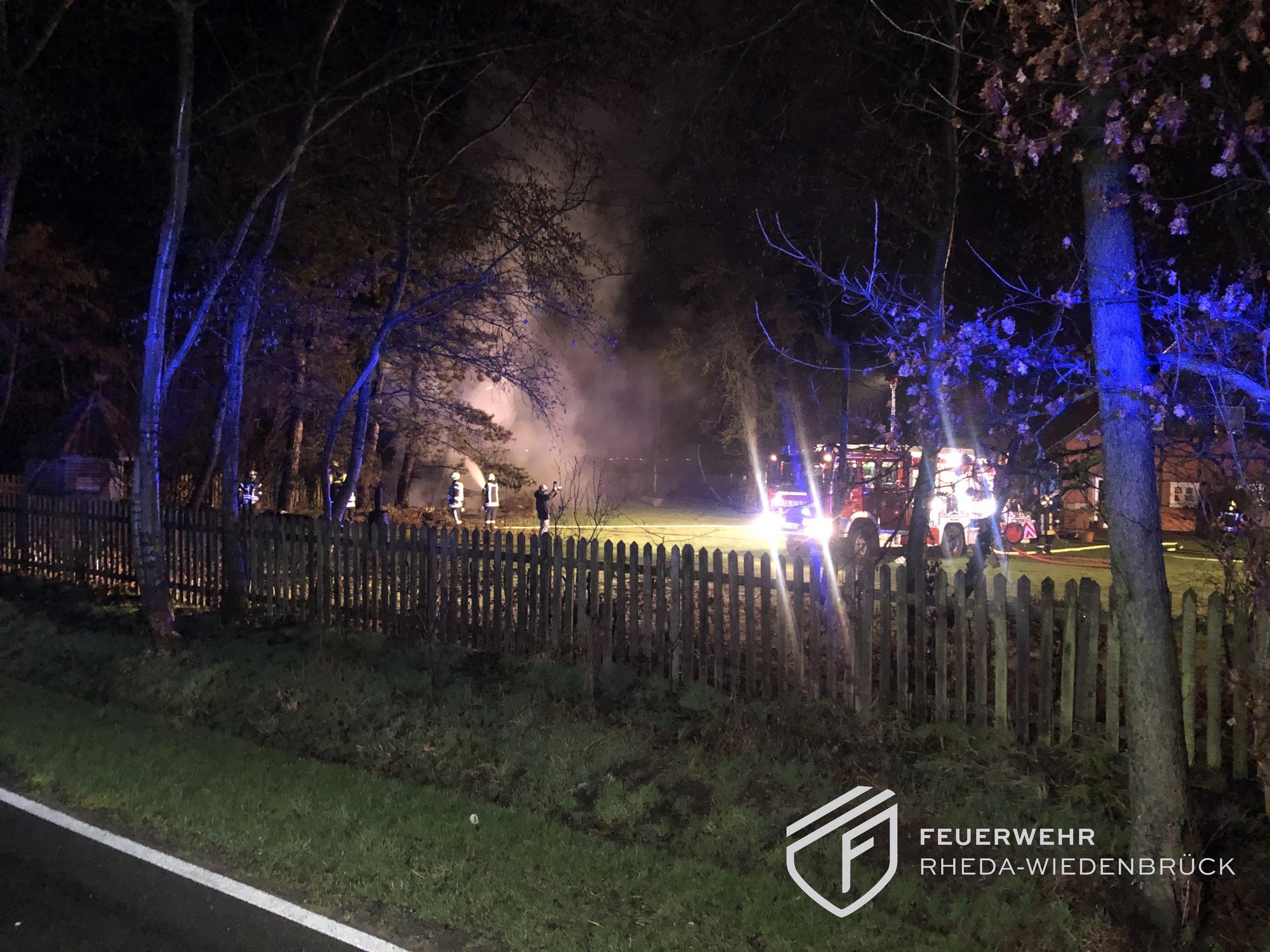 Zur Unterstützung rückte auch der Löschzug Wiedenbrück mit zwei Fahrzeugen an. Das Feuer, welches von weitem gut sichtbar war, wurde von zwei Atemschutztrupps schnell gelöscht und dadurch eine Ausbreitung verhindert. Die Nachlösch- und Kontrollarbeiten zogen sich etwas in die Länge, da die isolierte Außenhülle der Sauna demontiert werden musste.