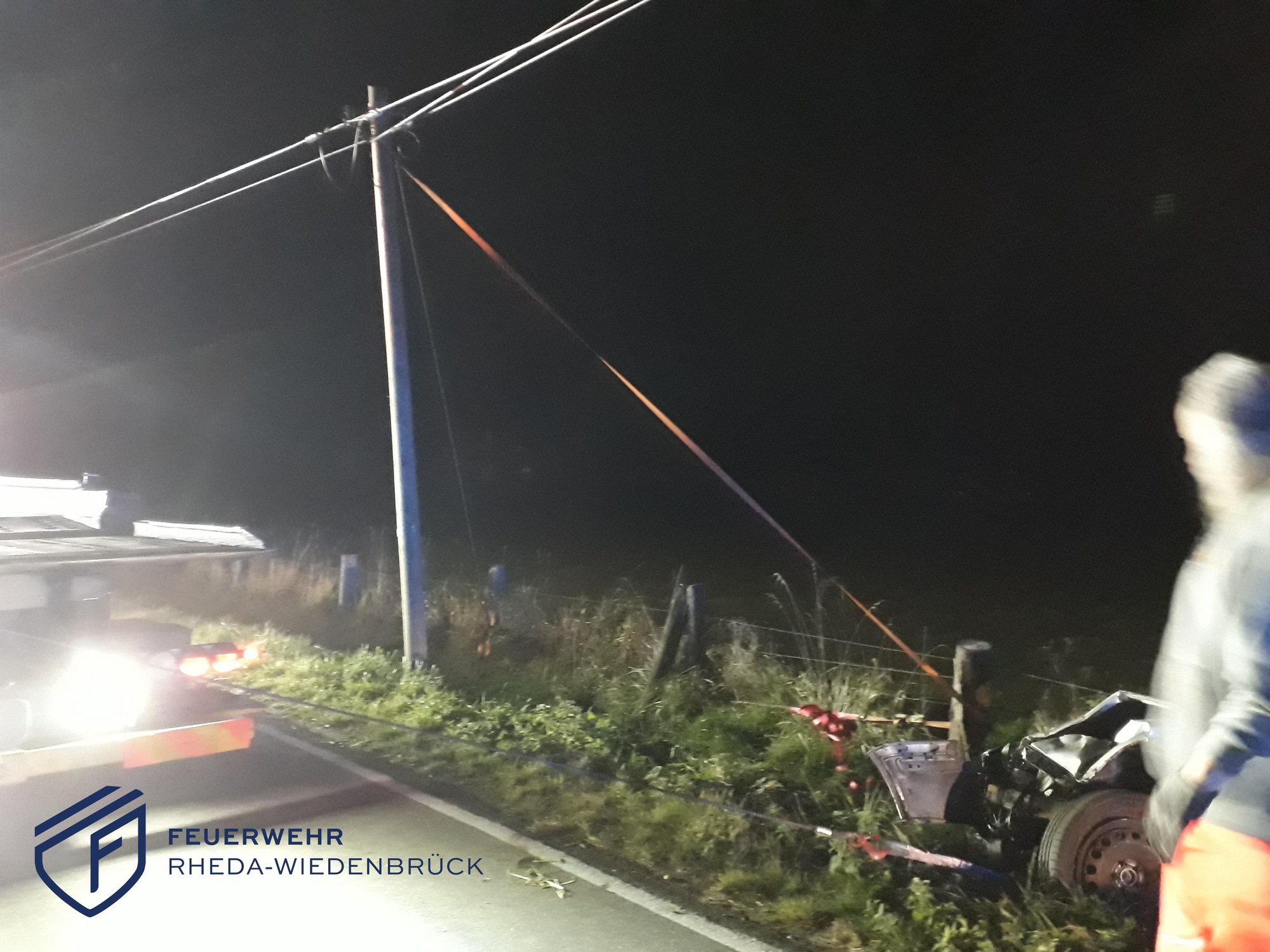 Wir wurden von der Polizei zu einem Verkehrsunfall auf die Kornstraße in Lintel alarmiert. Hier hatte ein PKW bei einem Alleinunfall einen Telefonmasten so stark beschädigt, dass dieser durchgebrochen ist. Wir sicherten den Telefonmasten mit Spanngurten, sodass die Straße nach dem Abtransport des PKW wieder freigegeben werden konnte.