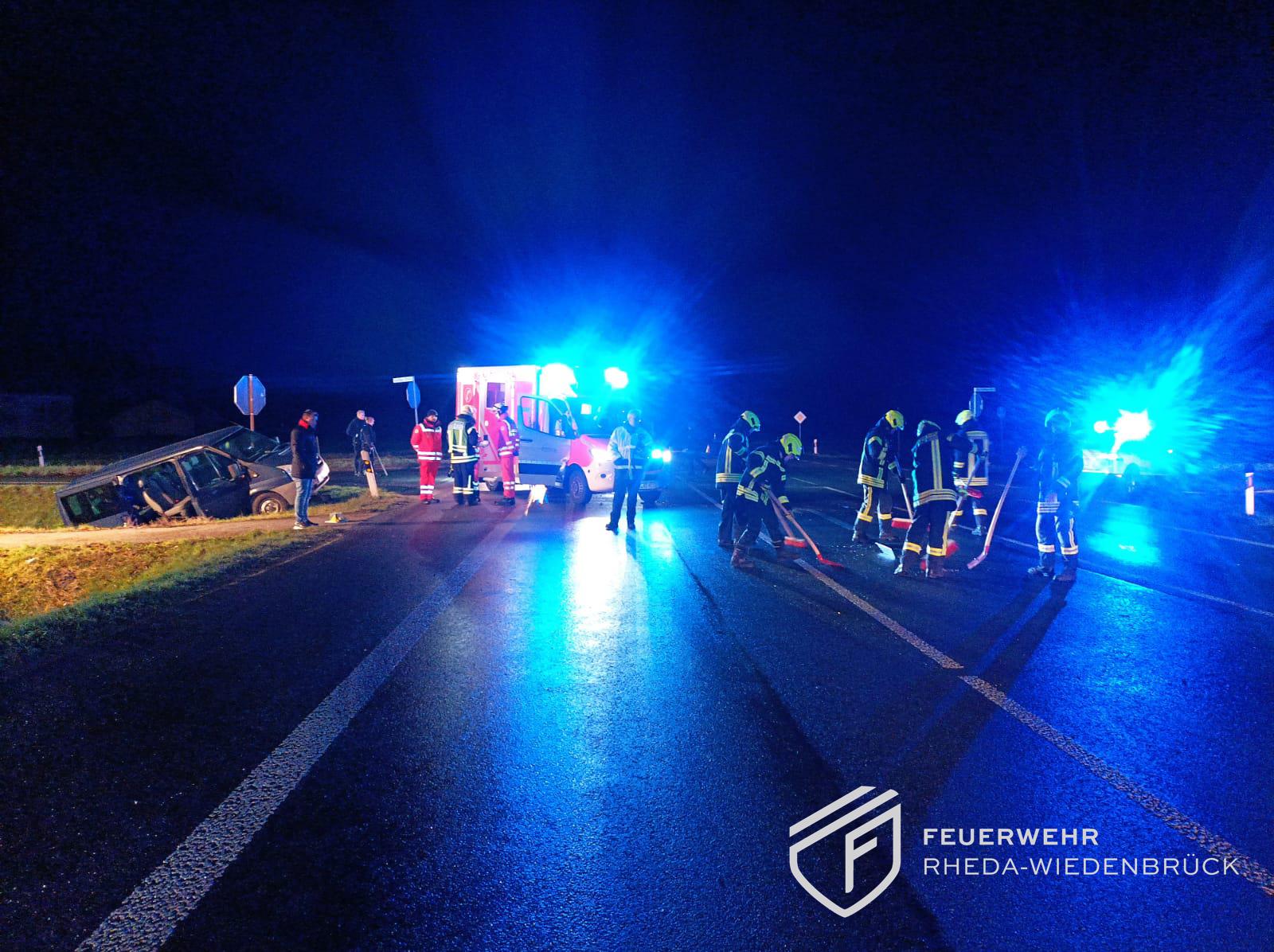 In der Nacht zum 30.12.22 um 02:34 Uhr rückten wir zu einem Verkehrsunfall auf der B64 aus. Ein Kleinbus mit acht Insassen kollidierte mit einem PKW, in dem sich eine Person befand. Aufgrund der Menge von Verletzten wurde der sogenannten ManV 10 (Massenanfall von Verletzten, bis 10 Betroffene) ausgelöst. Zum Glück war niemand der Betroffenen eingeklemmt oder lebensbedrohlich verletzt. Der Löschzug Lintel unterstützte bei der Organisation der Einsatzstelle und richtete einen Bereitstellungsraum für die weiteren Rettungsmittel ein. Die Einsatzstelle wurde gesichert und für die Rettungsmaßnahmen ausgeleuchtet. Im Einsatz waren mehrere Rettungswagen aus Rheda-Wiedenbrück sowie vom Kreis Gütersloh, zwei Notarzteinsatzfahrzeuge und mehrere weitere Hilfsorganisationen, sodass die neun Verletzten schnell versorgt werden konnten. Der Einsatz war für uns nach ca. 2,5 Stunden beendet und die Polizei konnte die Vollsperrung der B64 wieder aufheben.