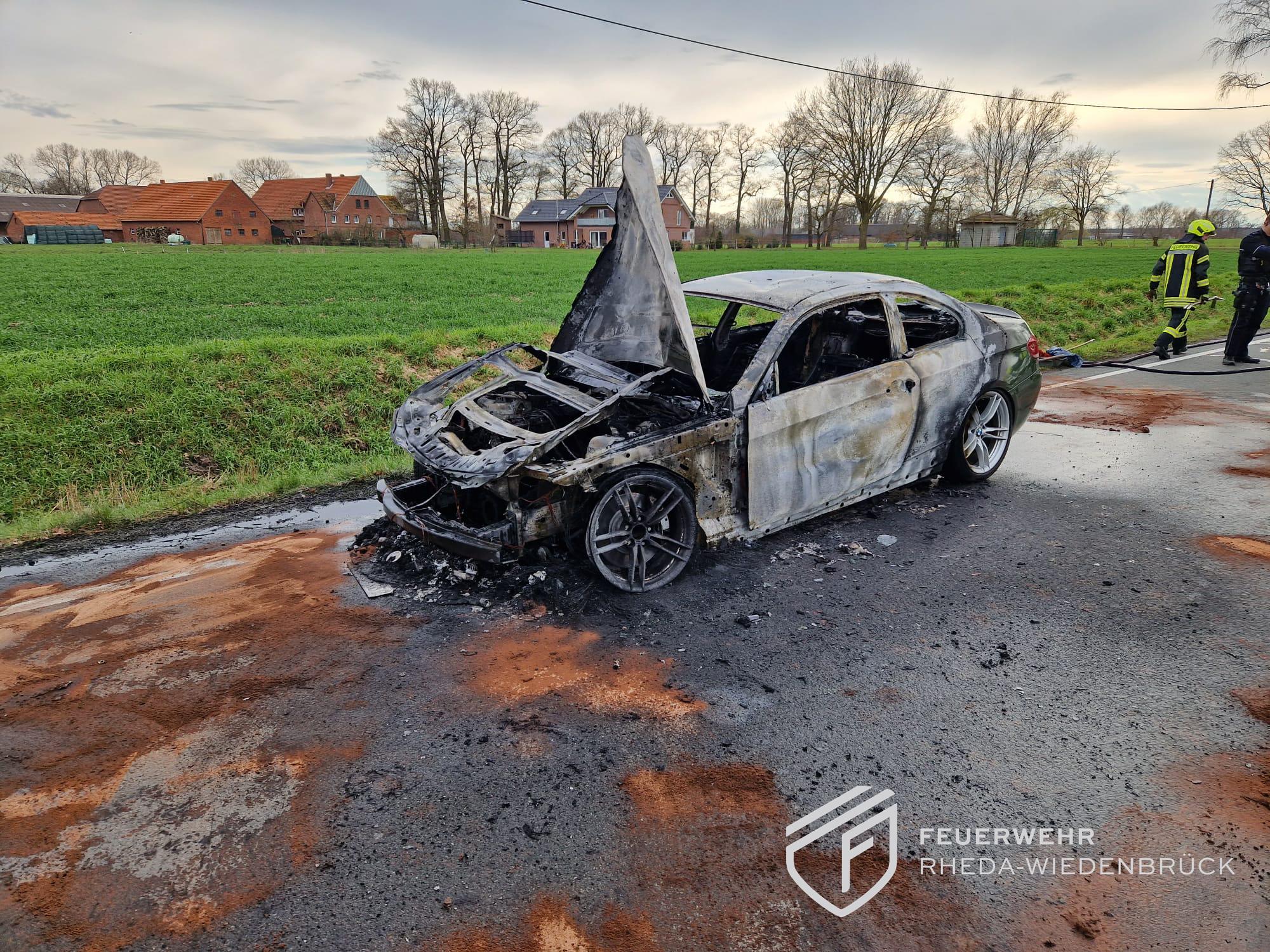 Am Samstagnachmittag kam es auf der Varenseller Straße in Lintel zu einem PKW-Brand. Die Kreisleitstelle bekam zunächst die Meldung, dass der Fahrzeugbrand in Varensell am Kreisverkehr Hauptstraße / Neuenkirchener Straße sei, daher wurde der zuständige Löschzug Neuenkirchen der Freiwilligen Feuerwehr Rietberg alarmiert. Eine Gruppe des Löschzug Lintel befand sich zu einer Übung am Feuerwehrhaus und wurde auf den PKW-Brand in ihrem Einsatzgebiet aufmerksam gamacht. Nach Rücksprache mit der Kreisleitstelle rückten wir ebenfalls mit unserem LF-20-1 aus. Zusammen mit den Einsatzkräften des Löschzug Neuenkirchen konnte der Brand dann schnell gelöscht werden, am PKW entstand jedoch ein Totalschaden.