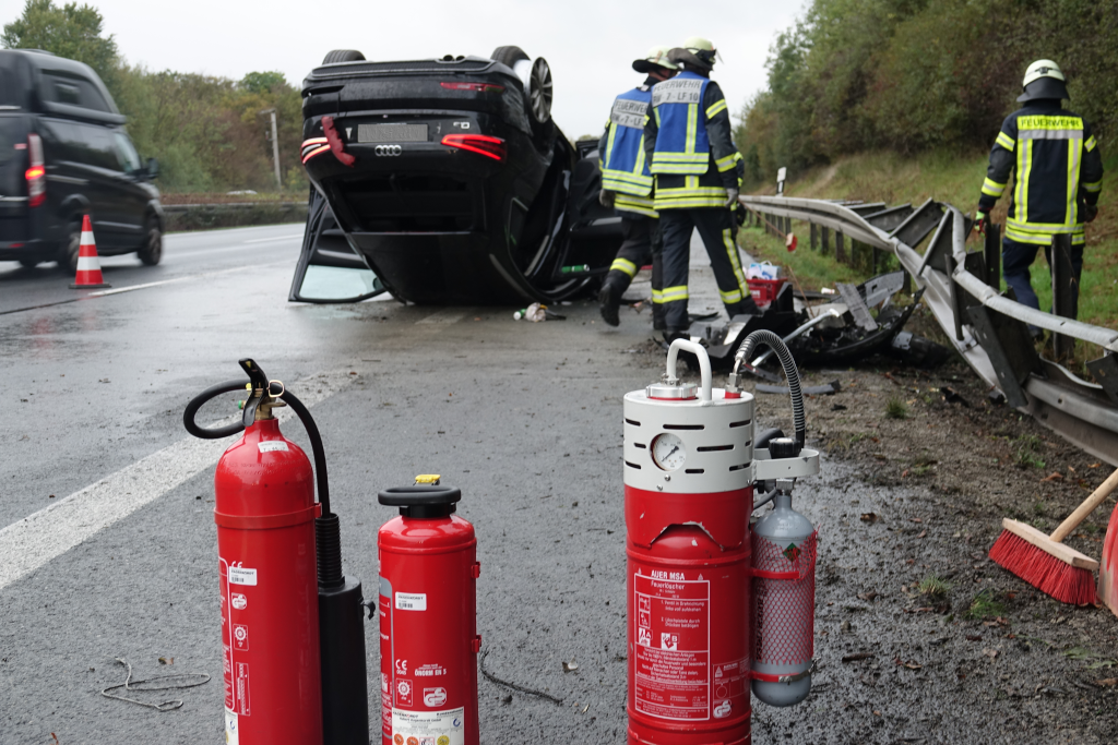 Am Samstagmorgen ereignete sich auf der BAB 2 in Fahrtrichtung Dortmund ein Verkehrsunfall mit zwei beteiligten PKWs, bei dem ein PKW auf dem Dach liegen blieb. Hierbei wurden zwei Personen verletzt. Zunächsten wurden die Löschzuge St. Vit und Rheda zu einer eingeklemmten Person alarmiert. Auf der Anfahrt gab die Leitstelle bereits die Rückmeldung, dass keine Person eingeklemmt ist. Somit konnte der Löschzug Rheda die Einsatzfahrt abbrechen. Der Löschzug St. Vit übernahm vor Ort die Maßnahmen der Einsatzstellenabsicherung, den Brandschutz und die Beseitigung von Trümmerteilen.