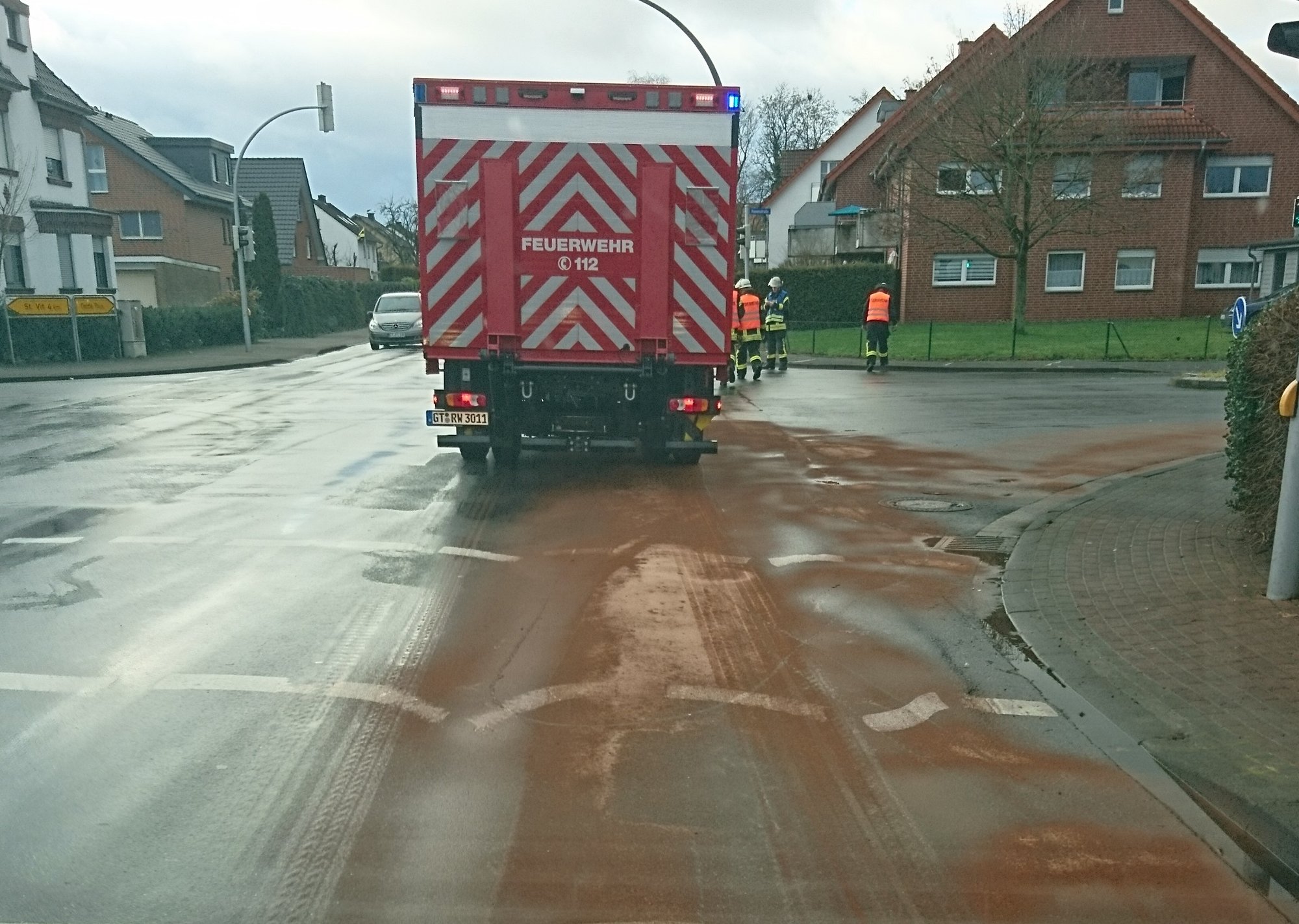 Die Leitstelle alarmierte uns zu einer Ölspur, die sich laut Anrufern von der Kreuzung Ringstraße/Oelder Straße bis ins Gewerbegebiet Aurea ziehen sollte. Wir stellten eine deutliche Ölspur auf der Oelder Straße zwischen der Kreuzung zur Ringstraße und der Straße An der Radheide fest. Darüber hinaus gab es eine Ölverschmutzung in den Kreisverkehren an der Autobahnauffahrt Herzebrock-Clarholz im Gewerbegebiet Aurea. Zusätzlich meldete uns die Polizei eine Ölverschmutzung auf der Kolpingstraße. Wir streuten die Ölspuren mit insgesamt 130 Kilo Bindemittel ab.