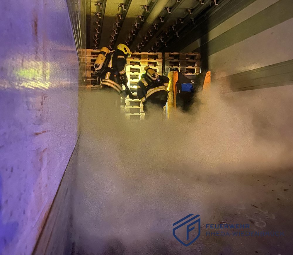 Auf einem Firmengelände war ein elektrischer Hubwagen in einem mit Paletten beladenen LKW-Auflieger in Brand geraten. Ein Trupp unter Atemschutz löschte das Feuer mit mehreren CO2-Löschern ab. Anschließend setzten wir die Seilwinde des HLF ein, um das Flurförderfahrzeug aus dem Auflieger zu ziehen. Durch unser schnelles und zielgerichtetes Eingreifen konnten wir eine Brandausbreitung auf die Paletten verhindern.