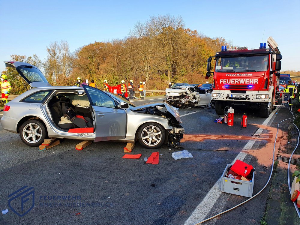Auf der Autobahn 2 ist es in Fahrtrichtung Dortmund zu einem schweren Verkehrsunfall gekommen. Der Unfall ereignete sich zwischen den Anschlussstellen Herzebrock-Clarholz und Oelde. Beteiligt waren vier Fahrzeuge, darunter ein Lkw. Leider ist eine Person noch an der Einsatzstelle verstorben. Vier weitere Personen wurden teils lebensgefährlich verletzt. Der Löschzug St. Vit nahm an einem der beteiligten Pkw schweres technisches Gerät vor, um eine verletzte Person aus dem Fahrzeug zu befreien. Am Lkw wurde der Kraftstofftank beschädigt, es liefen große Mengen Treibstoff aus. Die Patienten wurden durch die vier eingesetzten Rettungswagen aus Oelde und Rheda-Wiedenbrück in Krankenhäuser nach Bielefeld und Oelde gebracht. Im Einsatz war neben den Notärztinnen aus Oelde und Rheda-Wiedenbrück auch der Bielefelder Rettungshubschrauber Christoph 13. Der Einsatz war für die letzten Kräfte gegen 20 Uhr beendet. Die A2 blieb den ganzen Nachmittag über voll gesperrt.