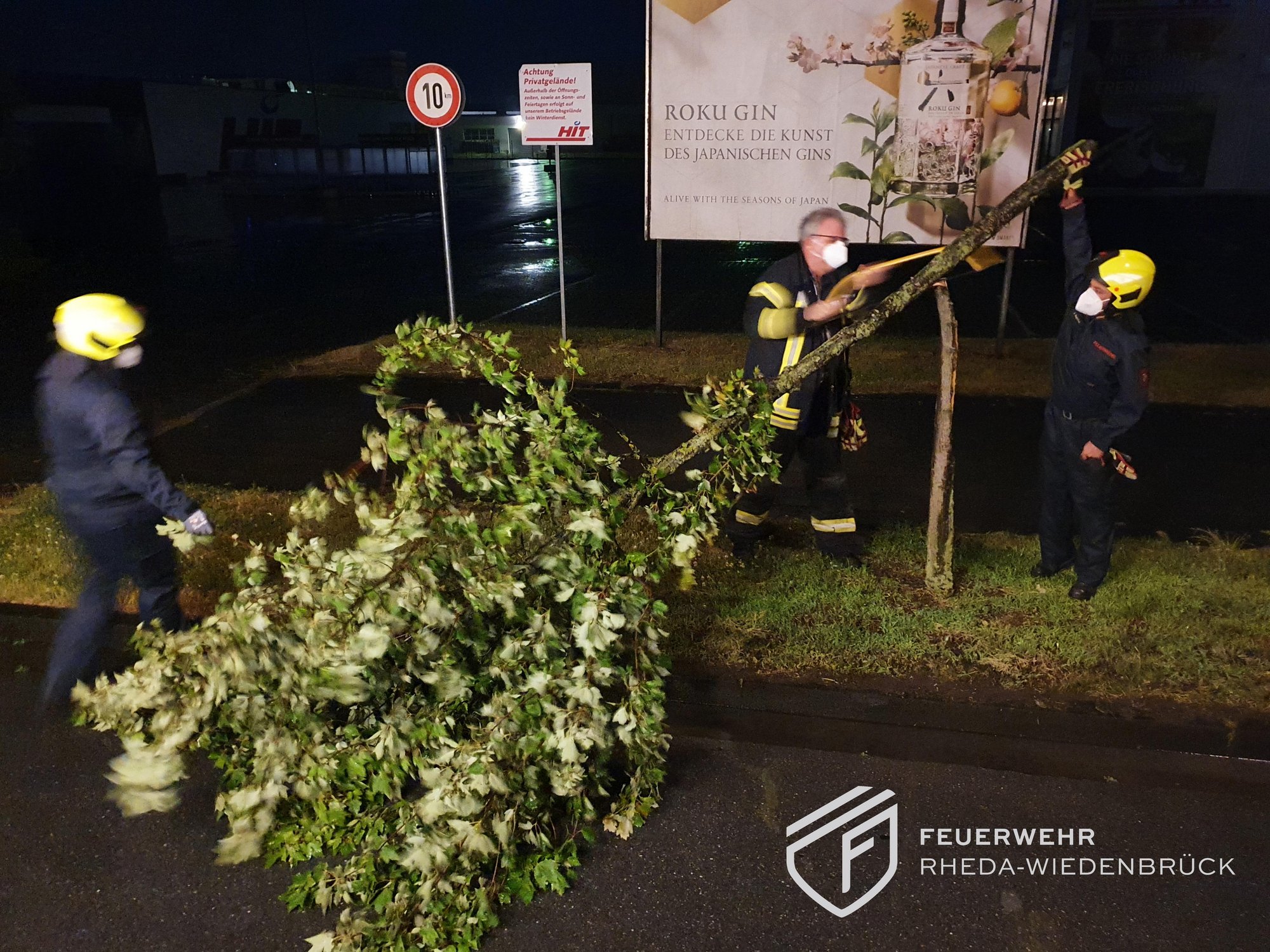 Ein kleiner Baum war durch das Unwetter abgeknickt und hing über der Straße. Mittels Bügelsäge konnten wir ihn zeitnah entfernen und die Gefahr für die Verkehrsteilnehmer beseitigen.