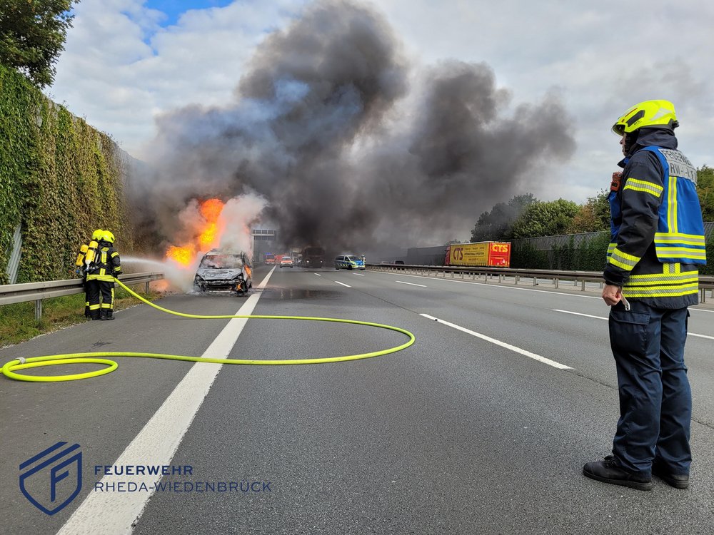 Auf der A2 war in Fahrtrichtung Dortmund ein Pkw in Brand geraten. Beim Eintreffen der ersten Kräfte stand da Fahrzeug bereits in Vollbrand. Da es sich bei dem Wagen um ein Notarzteinsatzfahrzeug eines privaten Rettungsdienstes aus dem Ruhrgebiet handelte, musste zunächst aus der Entfernung gelöscht werden - mitgeführte Sauerstoffflaschen stellten eine Gefahr dar. Während der Löscharbeiten musste die komplette Fahrtrichtung zeitweise gesperrt werden.