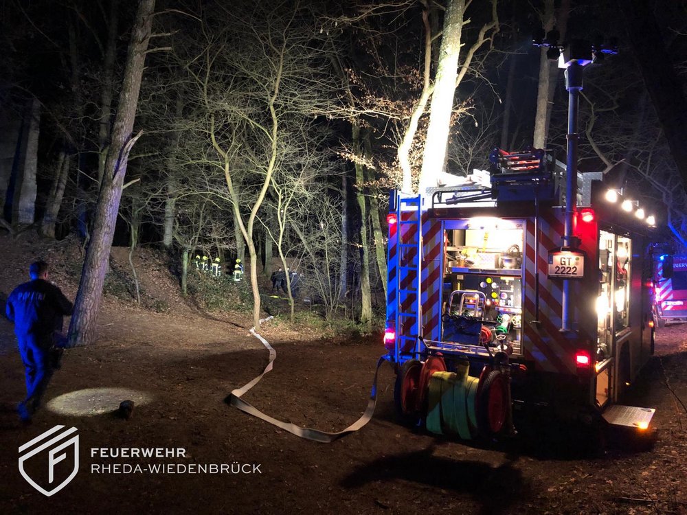 In der von den Nationalsozialisten errichteten Bunkeranlage im Rhedaer Forst ist es am Samstagabend zu einem Brand gekommen. Spaziergänger bemerkten die Rauchentwicklung aus einem der Einstiege in den Bunkergang der einstigen Schießanlage und alarmierten die Feuerwehr. Vor Ort ging ein Trupp unter Atemschutz in den Bunker vor und erkundete die Lage. Das Feuer war zu diesem Zeitpunkt bereits von alleine erloschen. Wir belüfteten den Bunkergang bestmöglich und suchten ihn nach Personen ab. Die Polizei hat die Ermittlungen zur Brandursache aufgenommen.
