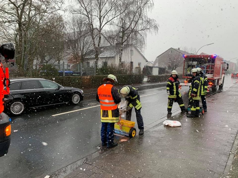 Wir streuten bei winterlichem Schneetreiben eine Ölspur ab, welche auf dem Nordring begann und sich bis zum Ostring Höhe Wartenbergstraße hinzog.