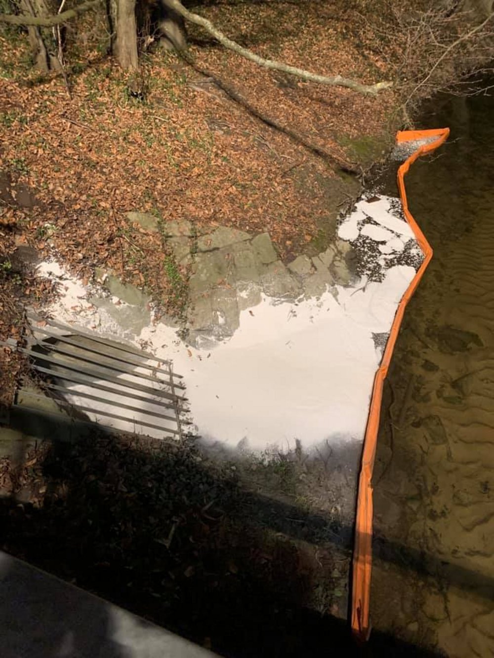 Auf dem Hamelbach waren Schwaden einer unbekannten Flüssigkeit zu erkennen, welche aus einem Kanaleinlauf kamen. Wir kontrollierten die anliegenden Kanäle und nahmen Proben um die Ursache zu finden. Zudem setzten wir eine Ölsperre vor dem Kanaleinlauf. Die aufschwimmende Flüssigkeit nahmen wir anschließend mit schwimmfähigem Bindemittel auf.