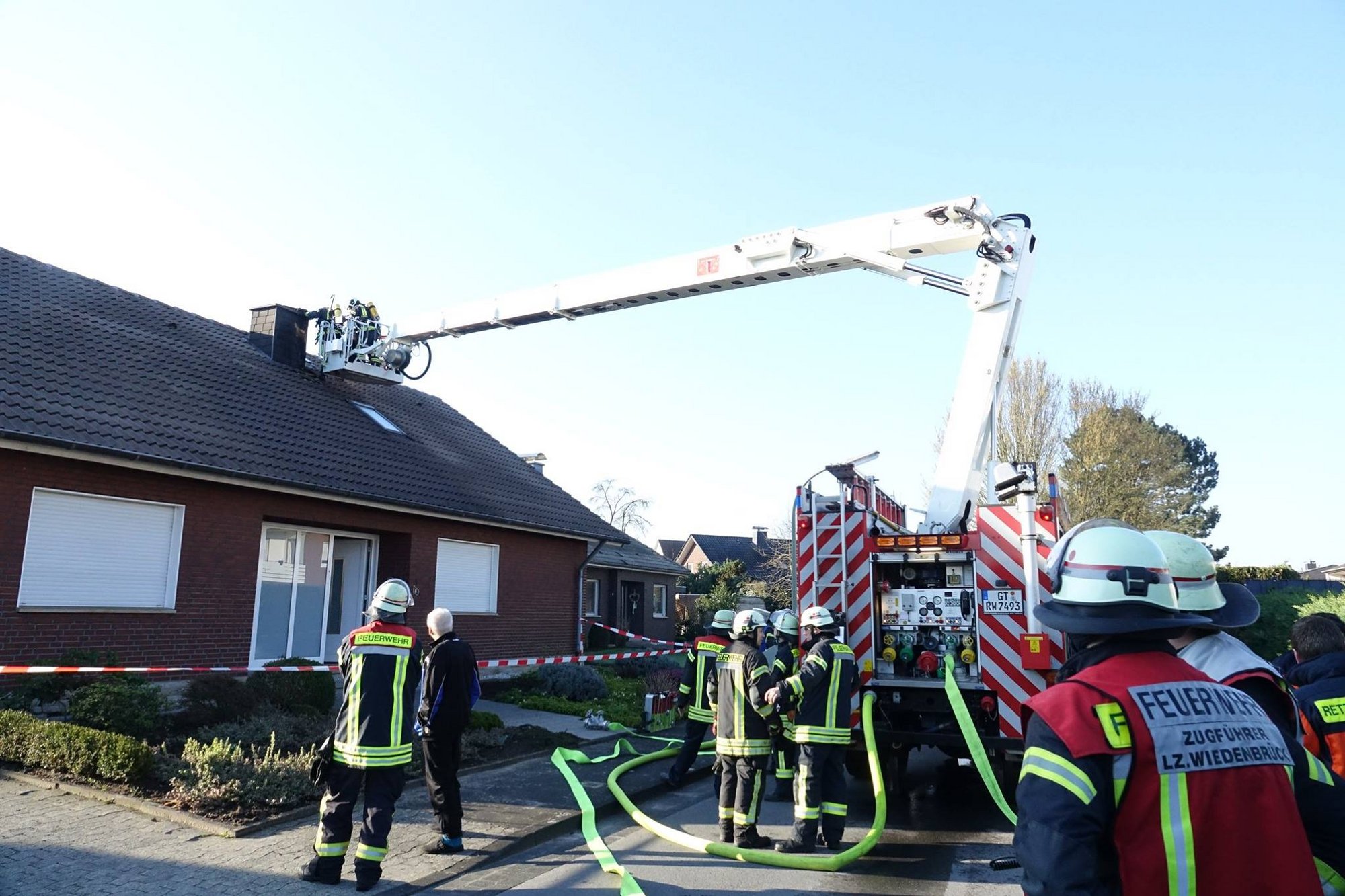 Dieses beschränkte sich glücklicherweise auf die Verkleidung des Schornsteines. Durch den Einsatz eines C-Rohres, über den Korb des HULF, konnte der Brand zeitnah gelöscht werden. Im Anschluss wurde der betroffene Bereich noch geöffnet und mit der Wärmebildkamera auf Glunester kontrolliert.