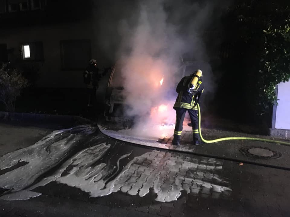 In der Nacht bemerkten Anwohner einen brennenden Kleintransporter in einer Hauseinfahrt.