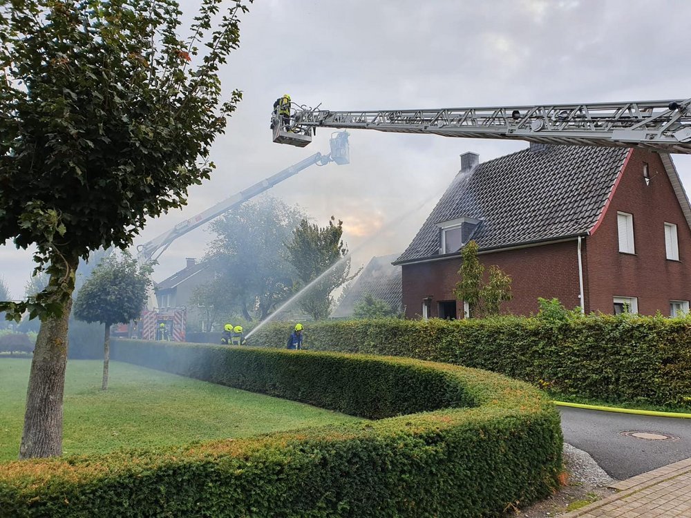 Heute Morgen um 10:45 Uhr wurde die hauptamtliche Wache und der Löschzug Wiedenbrück zu einem Zimmerbrand in einem Wohnhaus alarmiert. Noch auf der Anfahrt der ersten Kräfte wurde die Alarmierung durch das Einsatzstichwort "Dachstuhlbrand" erhöht, sodass der Löschzug Rheda ebenfalls zur Einsatzstelle eilte. Mit Hilfe der Drehleiter und des HULF's sowie mehrerer Kräfte unter Atemschutz konnten wir ein Übergreifen der Flammen vom Anbau zum Hauptgebäude erfolgreich verhindern und das Feuer löschen.