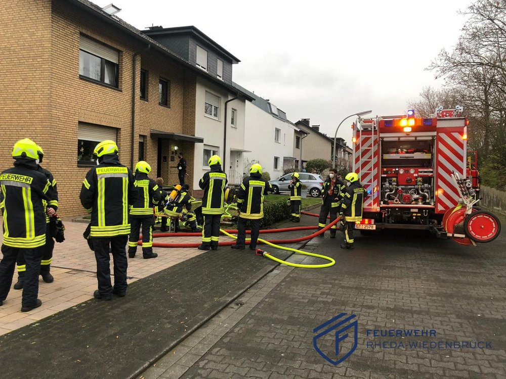 Am frühen Nachmittag wurden die Löschzüge Wiedenbrück und Rheda zu einem Feuer in einem Wohngebäude alarmiert, bei dem sich vermeintlich noch Personen in der Wohnung befinden sollten.Eine Menschenrettung musste jedoch glücklicherweise nicht eingeleitet werden, sodass wir uns auf die Brandbekämpfung in der Küche konzentrieren konnten. Im Anschluss wurde der gesamte Brandschutt aus der Wohnung entfernt und diese belüftet.