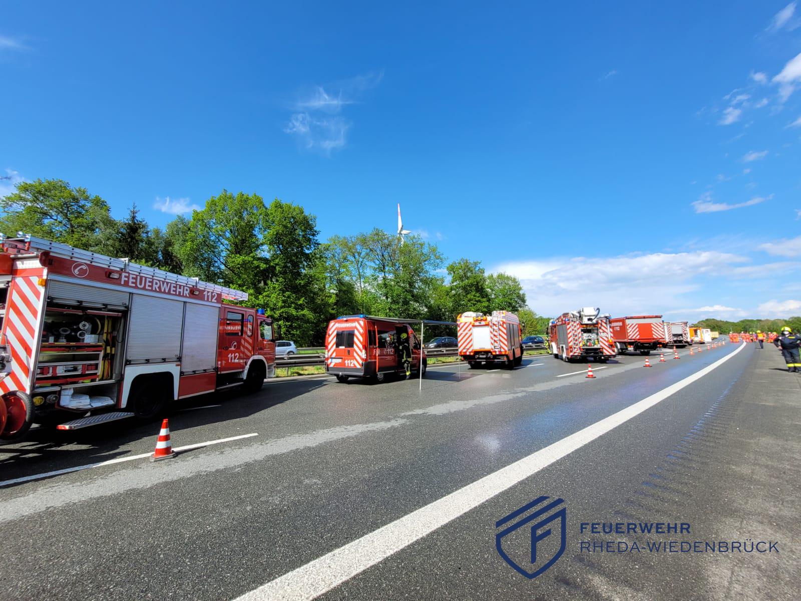 Heute kam es zu einem Verkehrsunfall mit insgesamt 15 beteiligten Fahrzeugen auf der Autobahn 2 in Fahrtrichtung Hannover. Nach der ersten Erkundung konnte jedoch festgestellt werden, dass keine Person eingeklemmt war. Trotzdessen wurde ein Massenanfall von Verletzten (MANV) ausgelöst. Die daraufhin alarmierten Hilfsorganisationen kümmerten sich um die insgesamt 24 beteiligten Personen. Mehrere dieser mussten in verschiedene Krankenhäuser transportiert werden. Durch den Löschzug Wiedenbrück wurde die Einsatzstelle gesichert und der Brandschutz sichergestellt, zudem führte der Löschzug St. Vit den Leitenden Notarzt zu.