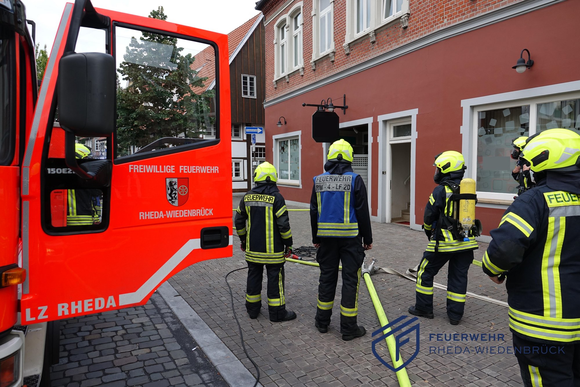 Die Löschzüge Rheda und Wiedenbrück sowie die hauptamtliche Wache wurden zu einer starken Rauchentwicklung am Doktorplatz alarmiert. Vor Ort konnte aber schnell Entwarnung gegeben werden. Der Rauch stammte nicht von einem Feuer, sondern war Teil der Alarmanlage eines Gebäudes. Diese hatte versehentlich ausgelöst. Ein Trupp unter Atemschutz kontrollierte die Geschäftsräume, anschließend wurden diese belüftet. Menschen kamen nicht zu schaden.