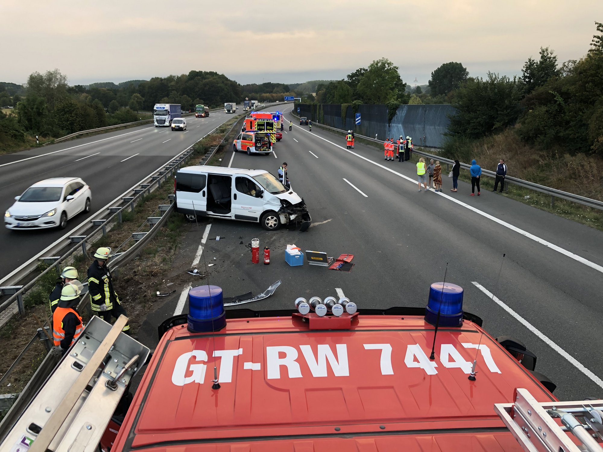 Auf der BAB A2 sind drei PKWs verunfallt, wodurch vier Personen verletzt wurden. Die alarmierten Kräfte des Löschzuges St. Vit und Rheda mussten gegen erster Meldung keine Person mit schwerem Gerät aus den Autos befreien. Die Maßnahmen der Feuerwehr waren somit die Absicherung der Einsatzstelle, Unterstützung des Rettungsdienstes und die Trümmerteilen von der Autobahn zu beseitigen.