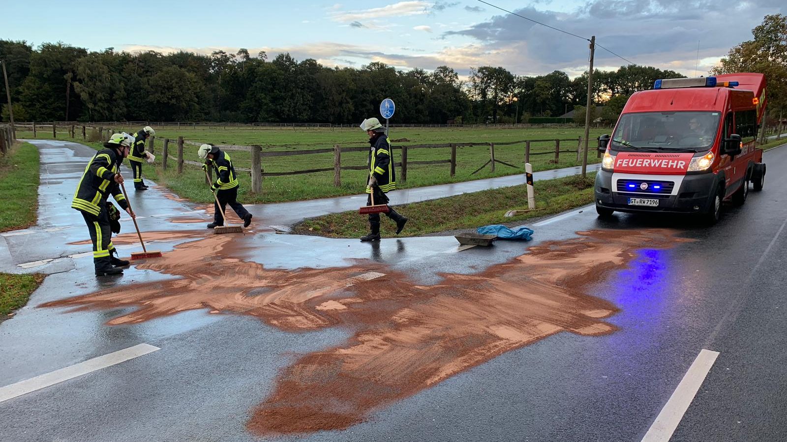 Der Löschzug Lintel wurde am Tag der Deutschen Einheit zu einem Einsatz mit ausgelaufenen Betriebsstoffen alarmiert. Der Einsatzort begann an der Kornstraße und dann weiter entlang der Gütersloher Straße. Mehrere kurze und längere Einsatzstellen wurden mit Bindemittel gereinigt. Gemeinsam mit der Polizei konnte ein Verursacher ermittelt werden.