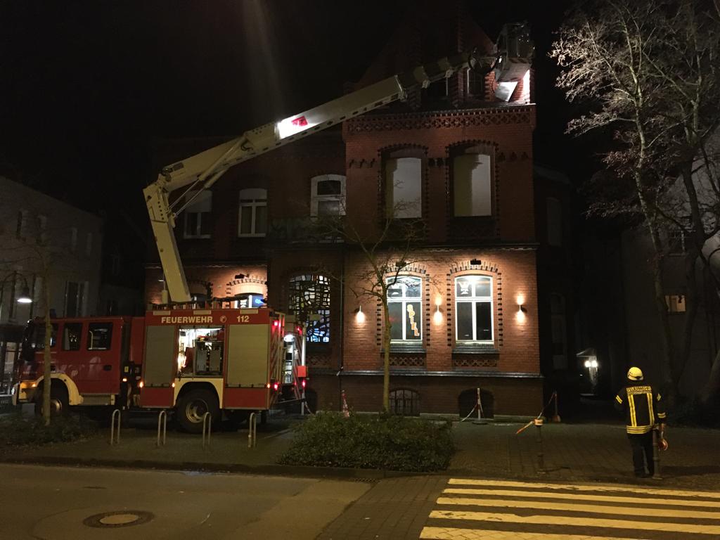 Am First des Gebäudes droht ein Abdeckblech der Attika, welches sich durch den Sturm gelockert hatte, auf den Gehweg zu stürzen. Der Bereich wurde bereits durch den Gebäudeeigentümer abgesperrt. Alle lockeren Bleche wurden entfernt.