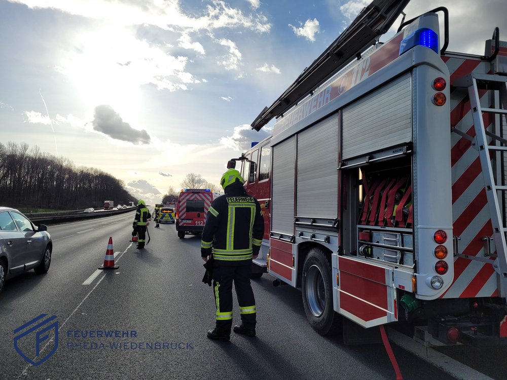 Auf der A2 ereignete sich ein Verkehrsunfall mit einem beteiligten Fahrzeugen. Wir wurden zur Unterstützung des Rettungsdienstes alarmiert und sicherten die Unfallstellen gegen den fließenden Verkehr ab. Des Weiteren wurde die Trümmerteile von der Fahrbahn beseitigt.